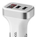 Тип: автомобильное • Выход USB: есть • Совместимые устройства: MP3-плееры, планшеты, сотовые телефоны • Количество портов USB: 2 • Цвет: белый, серебристый, черный • Размеры: 26x36x62 мм • Вес: 21 г • Прочее: встроенный вольтметр, дисплей